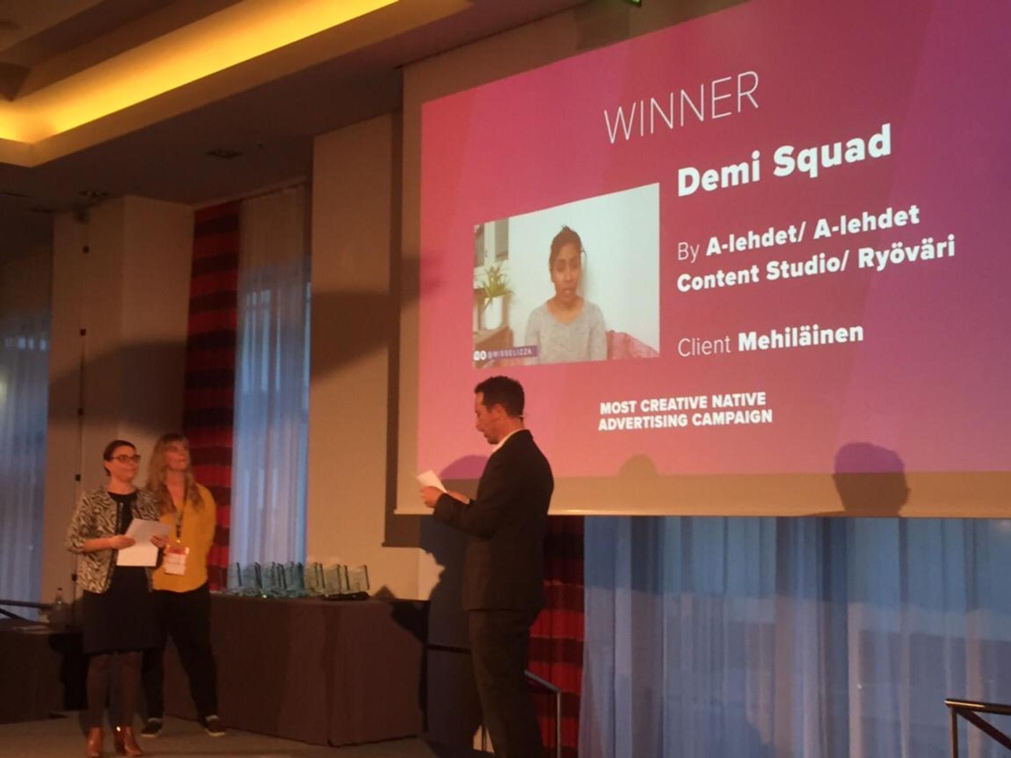 Palkittu kampanja kilpaili kategoriassa Most Creative Native Advertising Campaign. Sen ytimessä oli nuorille suunnattu innovatiivinen natiiviratkaisu Demin julkaisemassa Suomen ensimmäisessä chatfiction-draamasarjassa.