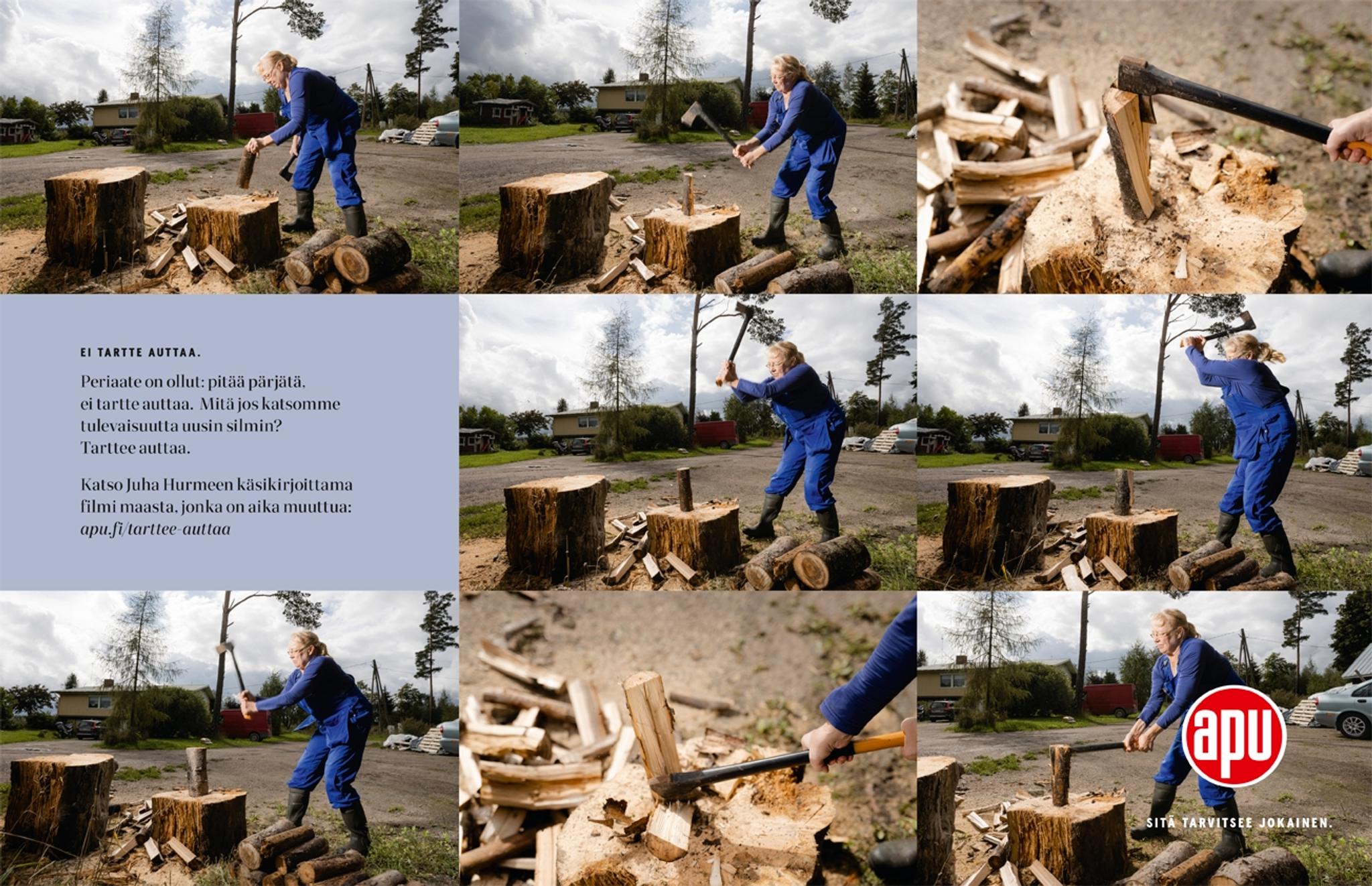Hurmeen monologi yhdistyy kuvakerrontaan Keksi Agencyn tuottamassa filmissä Ei tartte auttaa. Avun brändikampanjan filmi näytetään Finnkinon elokuvateattereissa 19.–28.11.2021 sekä osoitteessa: apu.fi/tarttee-auttaa.